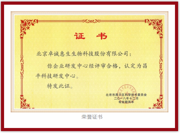 2018年12月,北京市昌平區(qū)科學(xué)技術(shù)委員會(huì)認(rèn)定北京卓誠惠生生物科技股份有限公司研發(fā)中心為昌平科技研發(fā)中心,并頒發(fā)榮譽(yù)證書,熱烈祝賀!?。?br>?